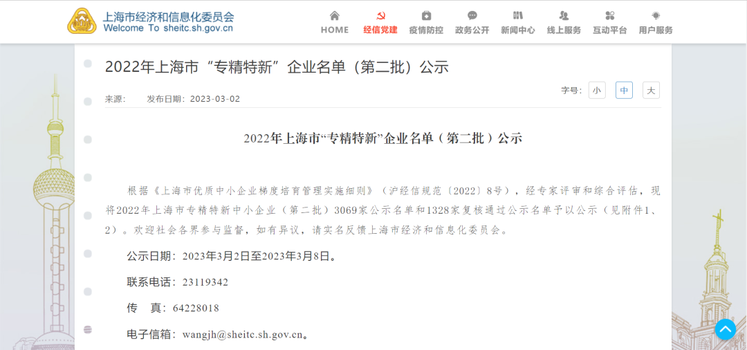 喜報|研究院榮獲2022年上海市“專精特新”企業稱號