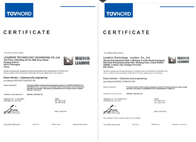 2024年5月11日,臻驅科技(上海)有限公司(以下簡稱“臻驅科技”)正式通過《ISO/SAE 21434道路車輛-網絡安全工程》(以下簡稱“ISO/SAE 21434”)汽車網絡安全管理體系認證,獲得此證書標志著臻驅科技已經建立了完整的汽車網絡安全管理體系,具備了產品網絡安全開發和管理能力,是公司體系建設中又一關鍵里程碑。